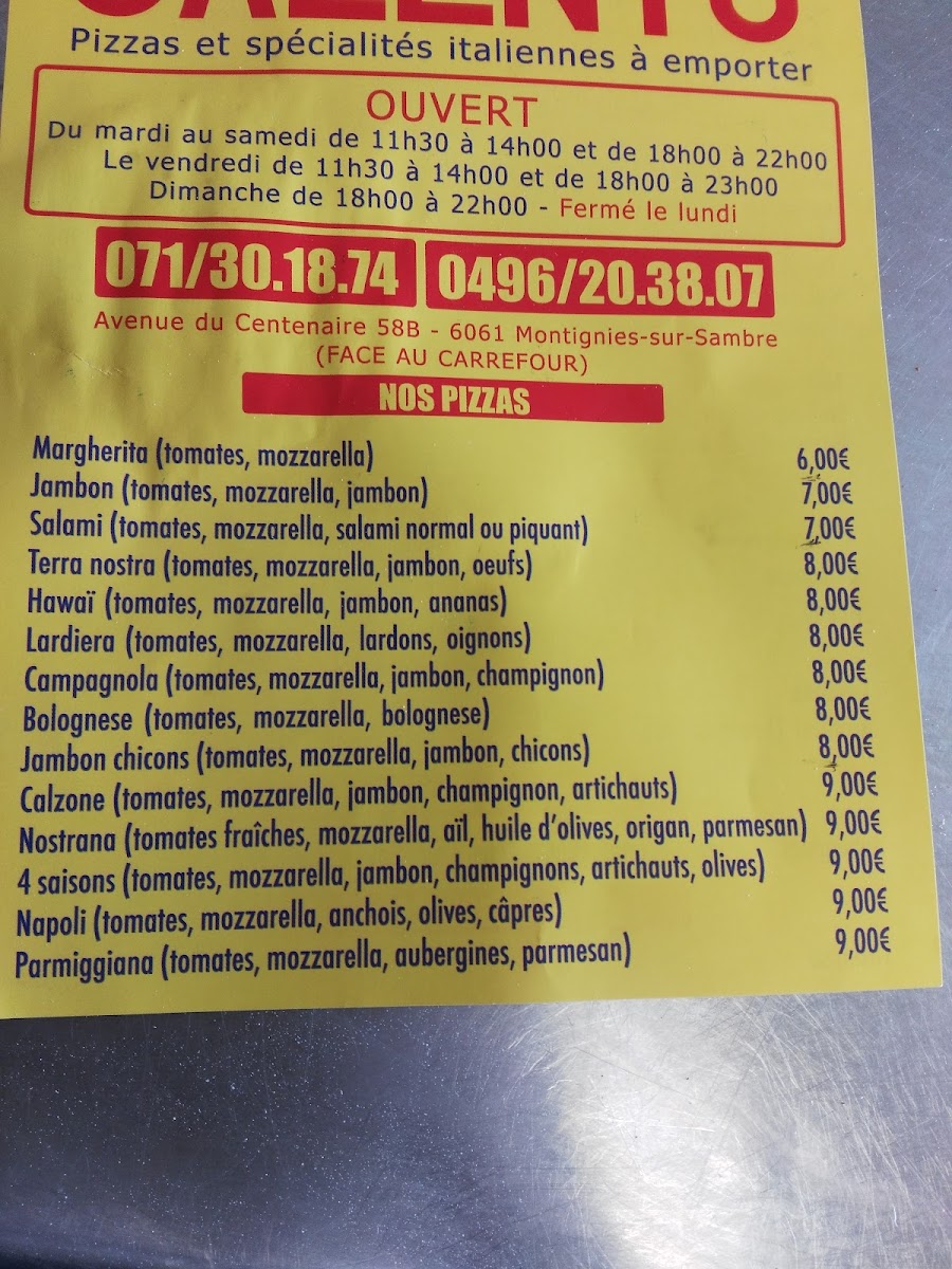 Welcome to Pizzeria Salento, nestled in the heart of Charleroi, Belgium, on Av. du Centenaire 58. This charming pizzeria stands out for its exceptional artistry in pizza-making and a warm, inviting atmosphere. Customers rave about the deliciously crafted crusts that truly elevate each pie, making it a hotspot for pizza enthusiasts.